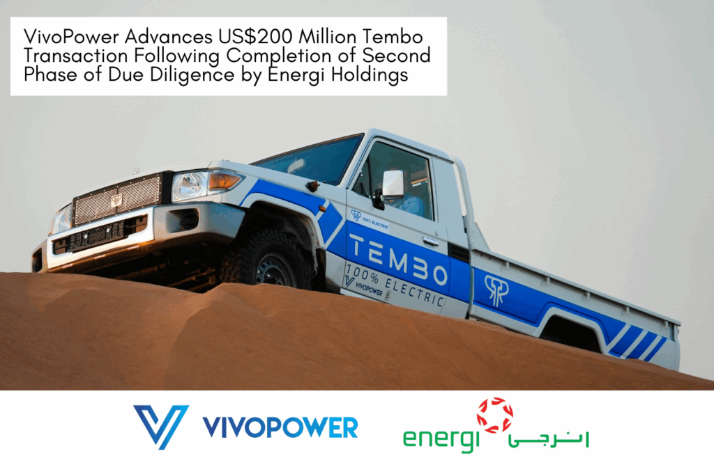 VivoPower Advances US$200 Million Tembo Transaction Following Completion of Second Phase of Due Diligence by Energi Holdings