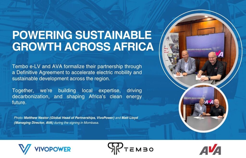 Kevin Chin, Executive Chairman of VivoPower, said: “We are proud to formalize this definitive partnership with AVA, an institution that has set the benchmark for quality and credibility in East Africa’s automotive industry. This binding agreement is part of our broader strategy to forge long-term alliances with trusted regional leaders who share our vision for electrification and energy transition. Together, Tembo and AVA will drive tangible decarbonisation across vital industries while supporting sustainable economic growth.”